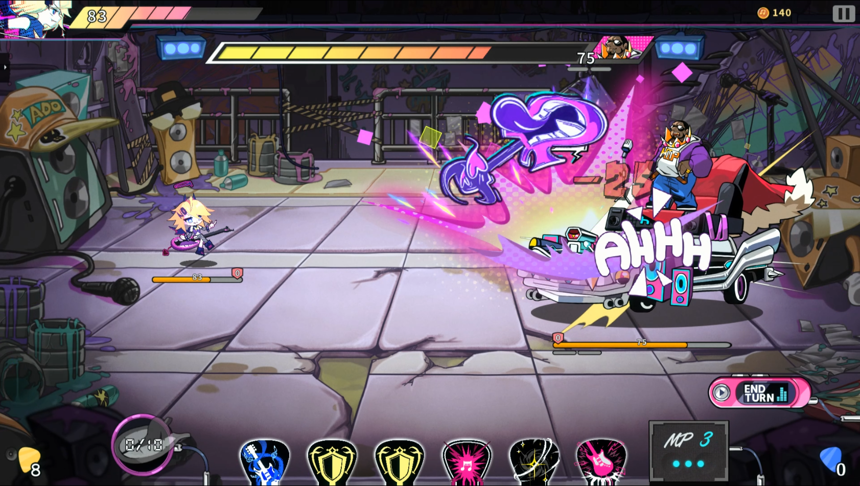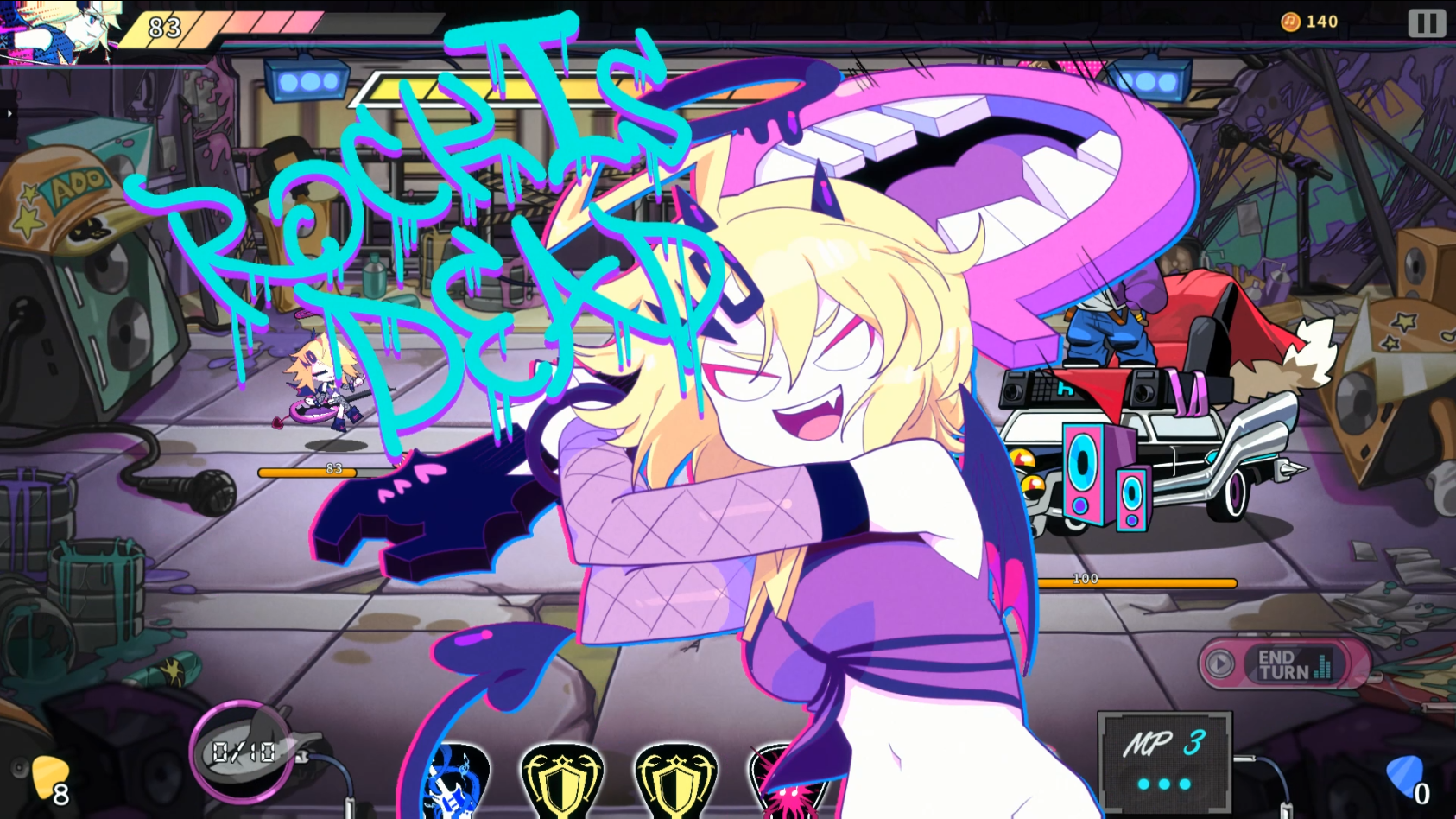 다양한 종류의 피크 모양 카드와 이 카드들을 조합해 만들어내는 독특한 공격 메커니즘, 그리고 게임의 빠른 템포를 유지시켜주는 리듬 게임 요소가 어우러진 게임입니다.