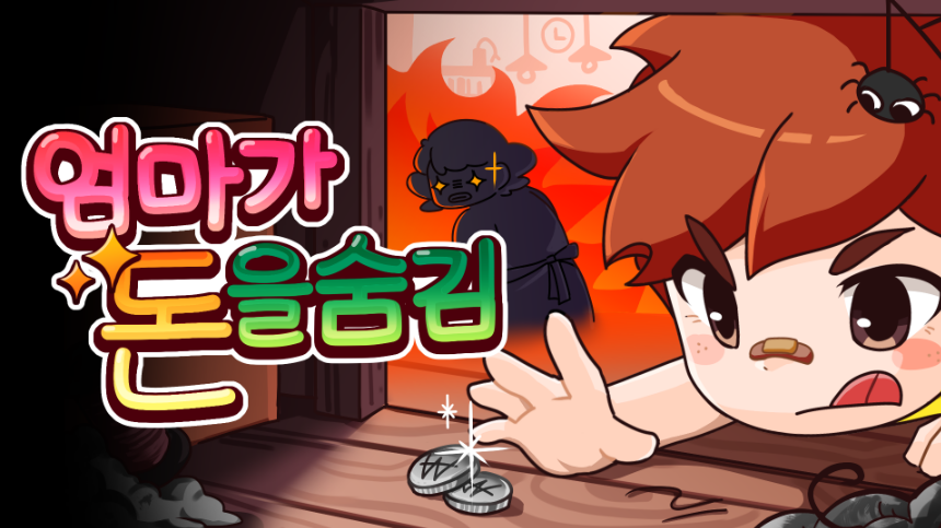 <엄마가 돈을 숨김>은 과거 2000년대 플래시 게임의 향수를 재현한 게임입니다. 오락실에 가기 위해 엄마의 방을 뒤져 돈을 모으고, 들키지 않도록 조심해야 합니다.
