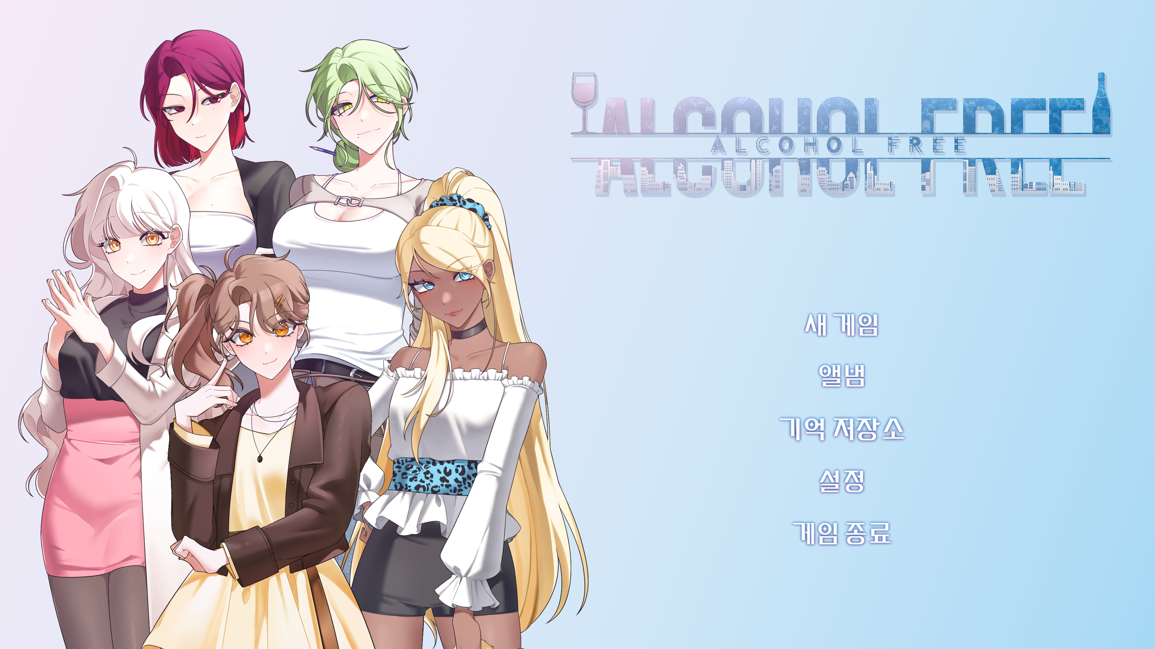 "알콜 프리"는 "술을 의인화" 한 캐릭터들과 교감하는 연애 시뮬레이션 게임입니다.