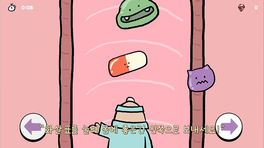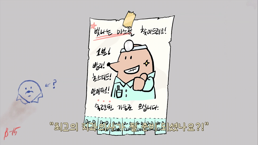 광선총을 맞고 입 사이즈로 작아진 "더지 박사"가 되어 입안으로 왕진을 가보세요.