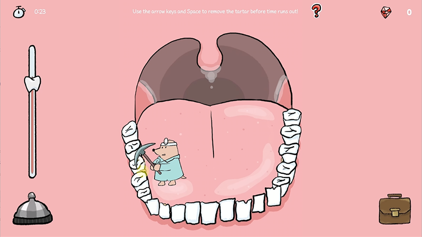 밧줄을 던져 발치를 하고, 드릴로 충치를 파내고, 포크레인과 폭탄(!)도 동원해보세요.