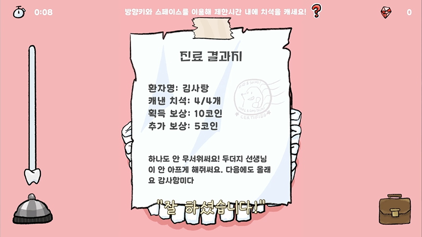 "두더지치과(Dr.Durge's Dental Clinic)"는 치과를 싫어하는 모든 겁쟁이들을 위한 게임입니다.
