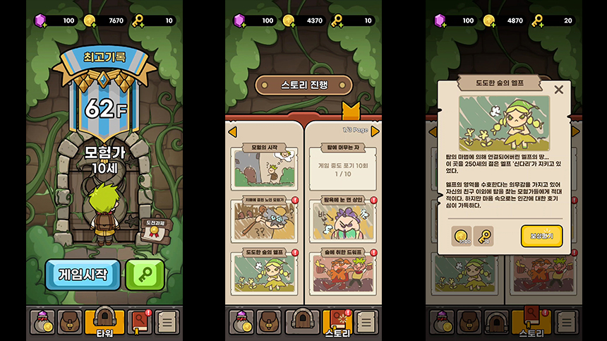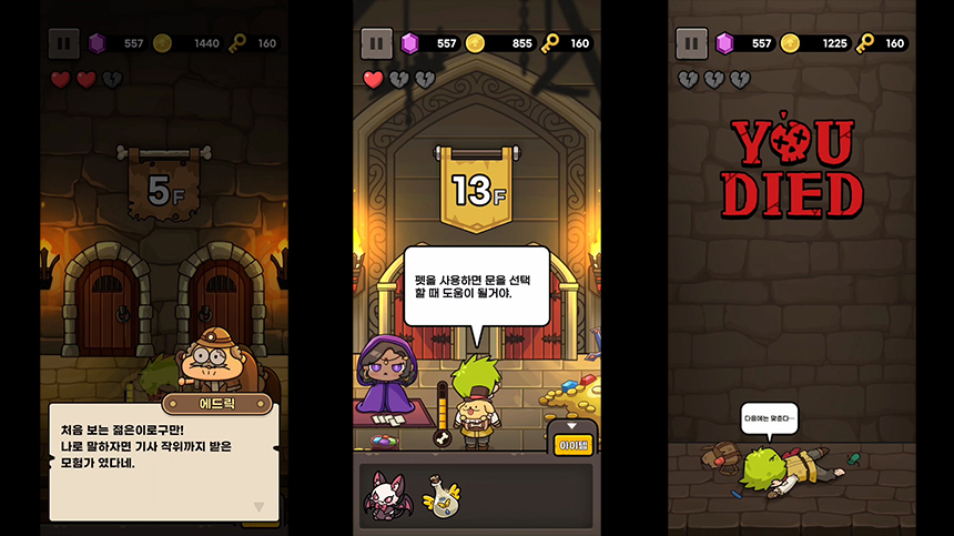 누구나 쉽게 즐길 수 있는 직관적인 규칙 속에서, 탑을 오르며 만나는 NPC들의 이야기가 점차 세계를 확장시킵니다.