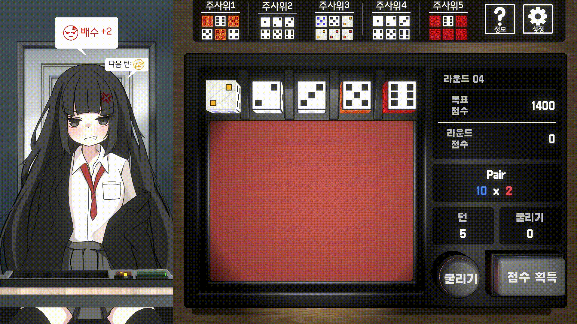 주사위를 이용한 덱빌딩 로그라이크 게임. 주사위를 융합해 나만의 커스텀 주사위를 만들고, 더 높은 점수를 노려보세요!