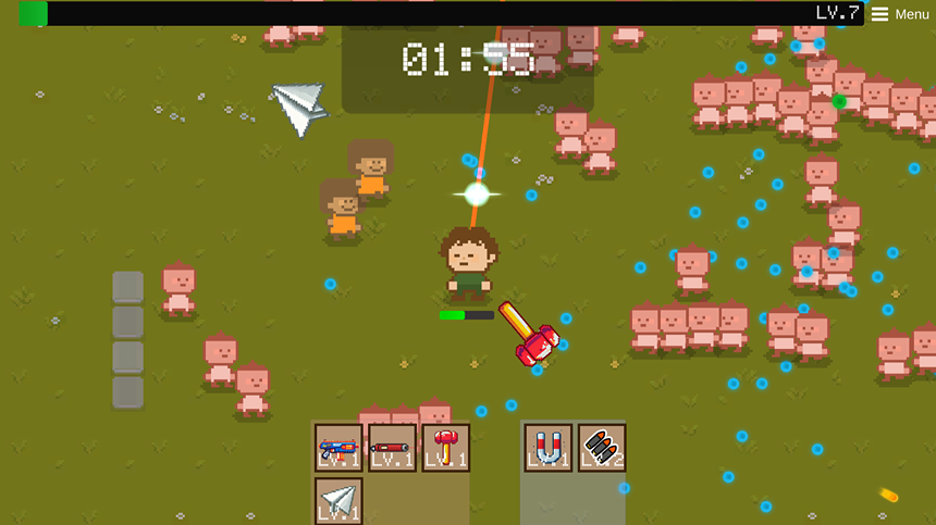 각종 장난감 무기를 사용하여 '좀비(놀이 중인 아이들)' 떼를 물리치세요.