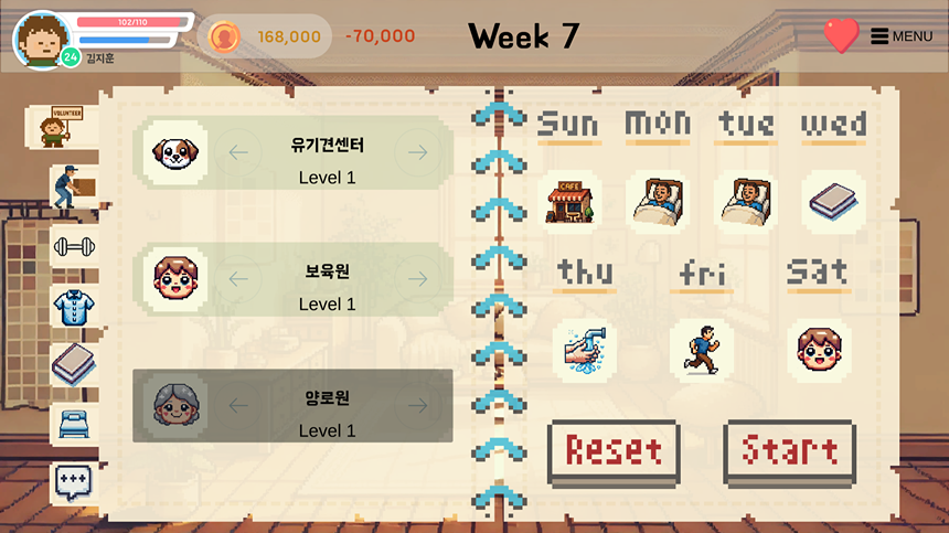 단순한 텍스트 진행이 아닙니다. 각 봉사 장소에는 독특한 스타일의 미니게임이 기다리고 있습니다.