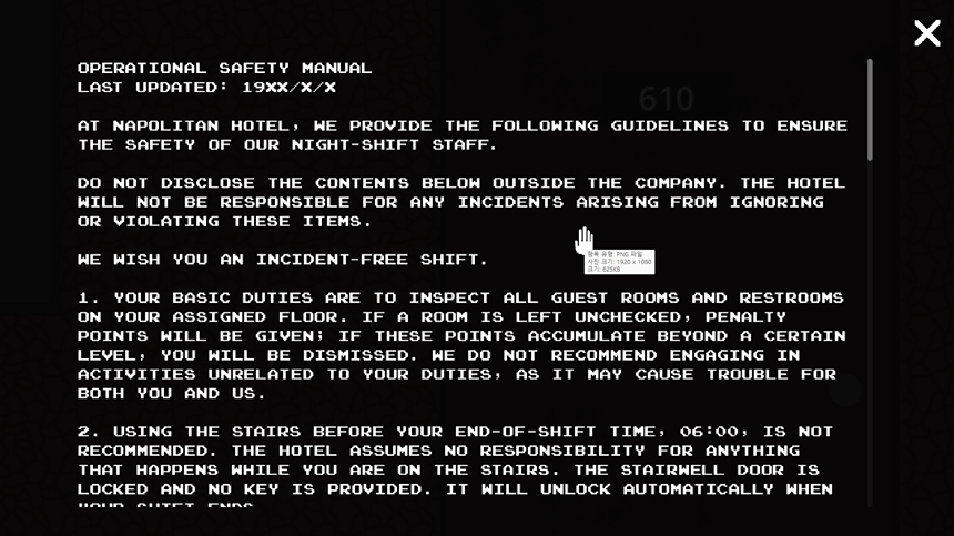 당신은 '나폴리탄 호텔'의 야간 직원으로 첫 출근을 했습니다. 해야 할 일은 간단합니다.