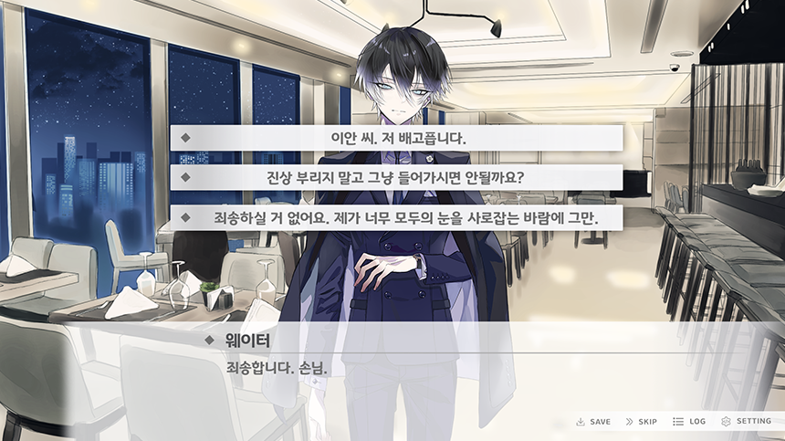젠틀사이코의 선택지는 피상적이고 형식적인 내용에 그치지 않고 유저가 직접 선택지를 통해 캐릭터와 감정적, 정서적인 교류를 나눌 수 있습니다.