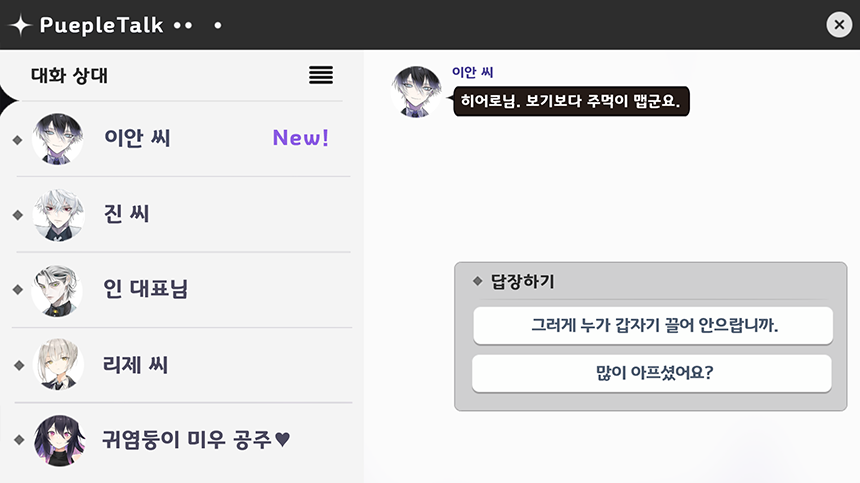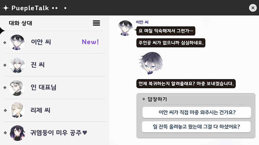 게임의 방관자로서 스토리를 지켜보는 것이 아닌 유저인 내가 중심이 되어 캐릭터와 교류하며 진행되는 스토리.