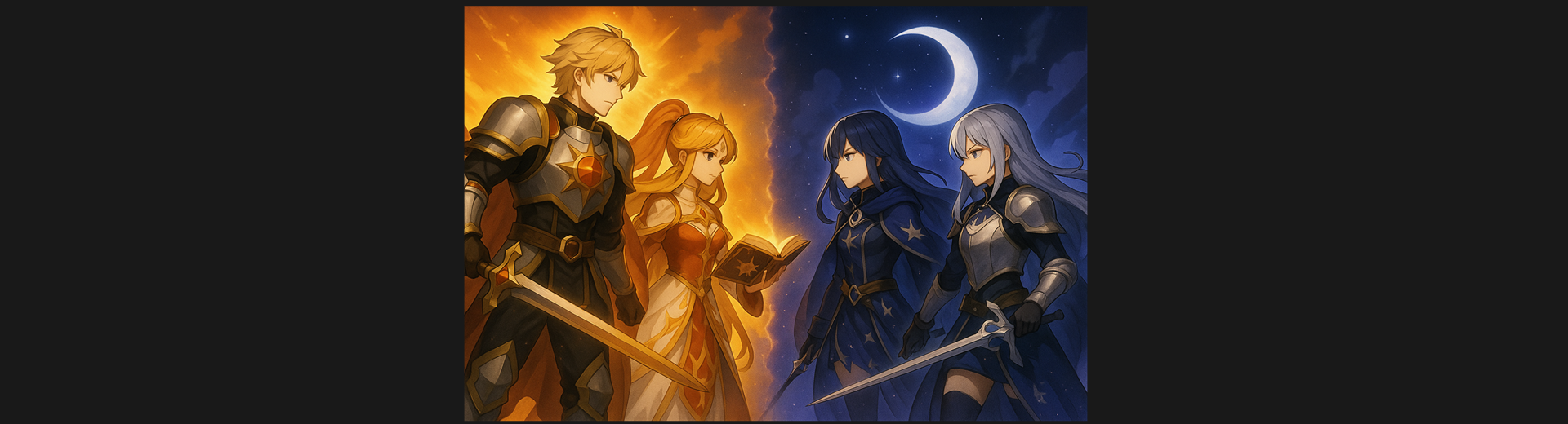 태양을 섬기는 세력과 달을 섬기는 세력의 전쟁..전쟁 속 영웅들을 소환하여 전투를 치르세요!