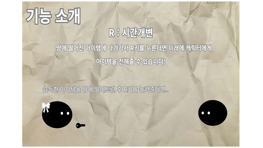 서로 다른 시간의 플레이어가 협력해야만 해결할 수 있는 퍼즐 게임을 만들고 싶었습니다. 소통, 관찰, 신뢰가 게임의 핵심입니다. 플레이어들이 마지막 엔딩에서 ‘왜 우리가 이어졌는지’를 자연스럽게 이해하게 되길 바랍니다.