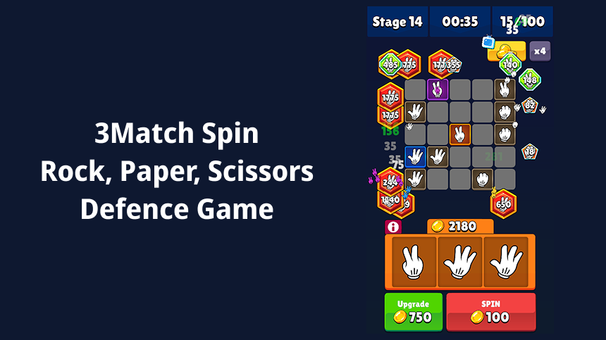 Press the Spin button to match Rock–Paper–Scissors and obtain powerful units.