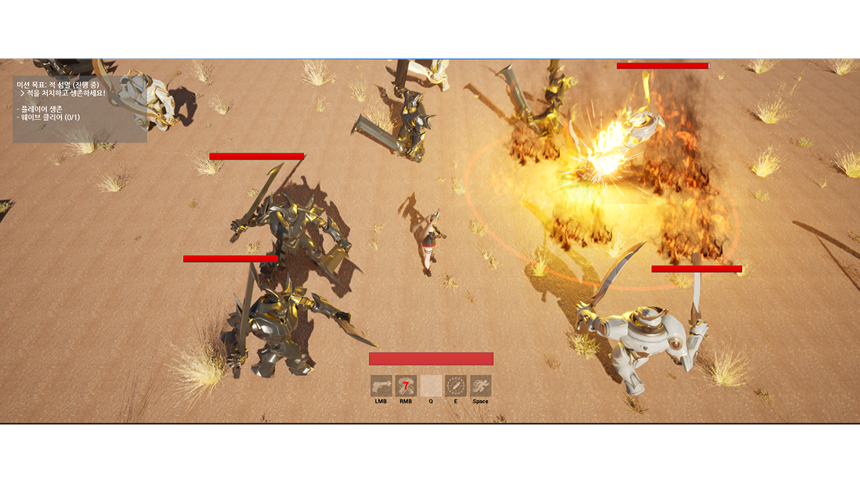 마우스 좌/우 클릭, 키보드 Q/E/Space - 스킬 사용