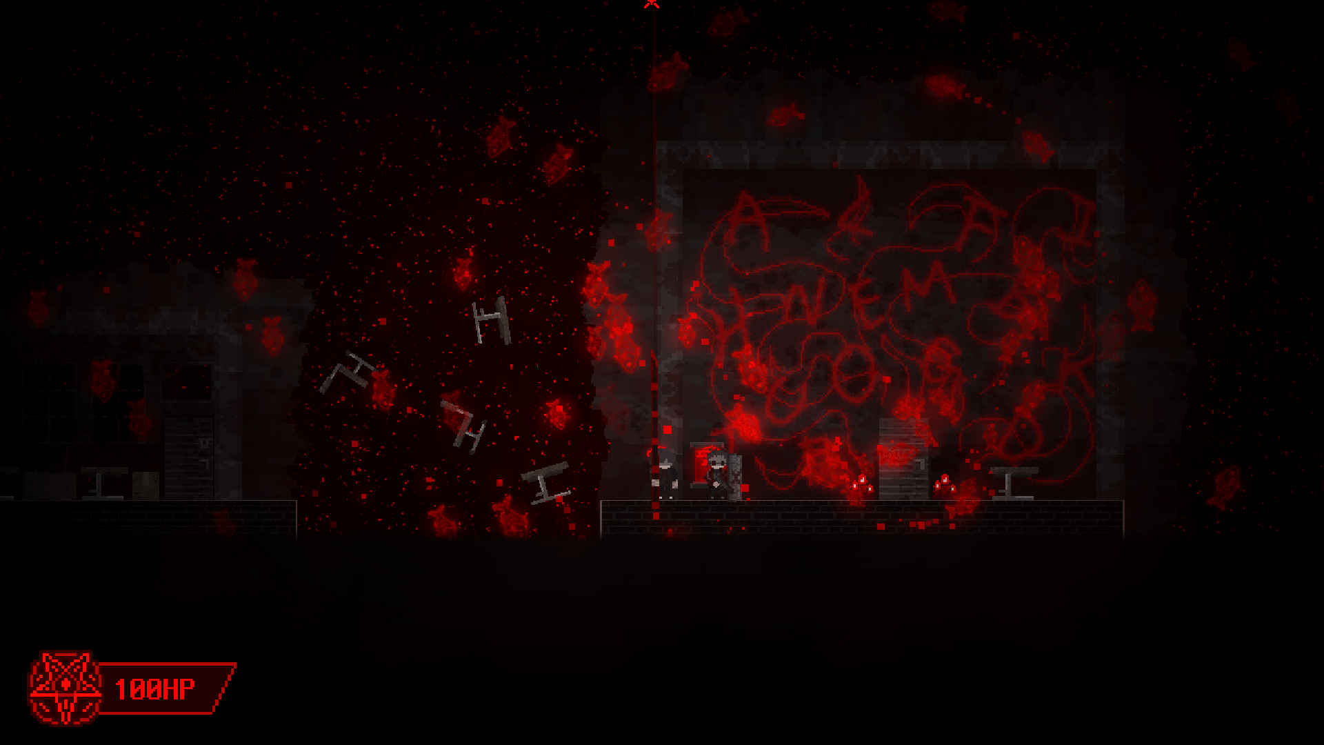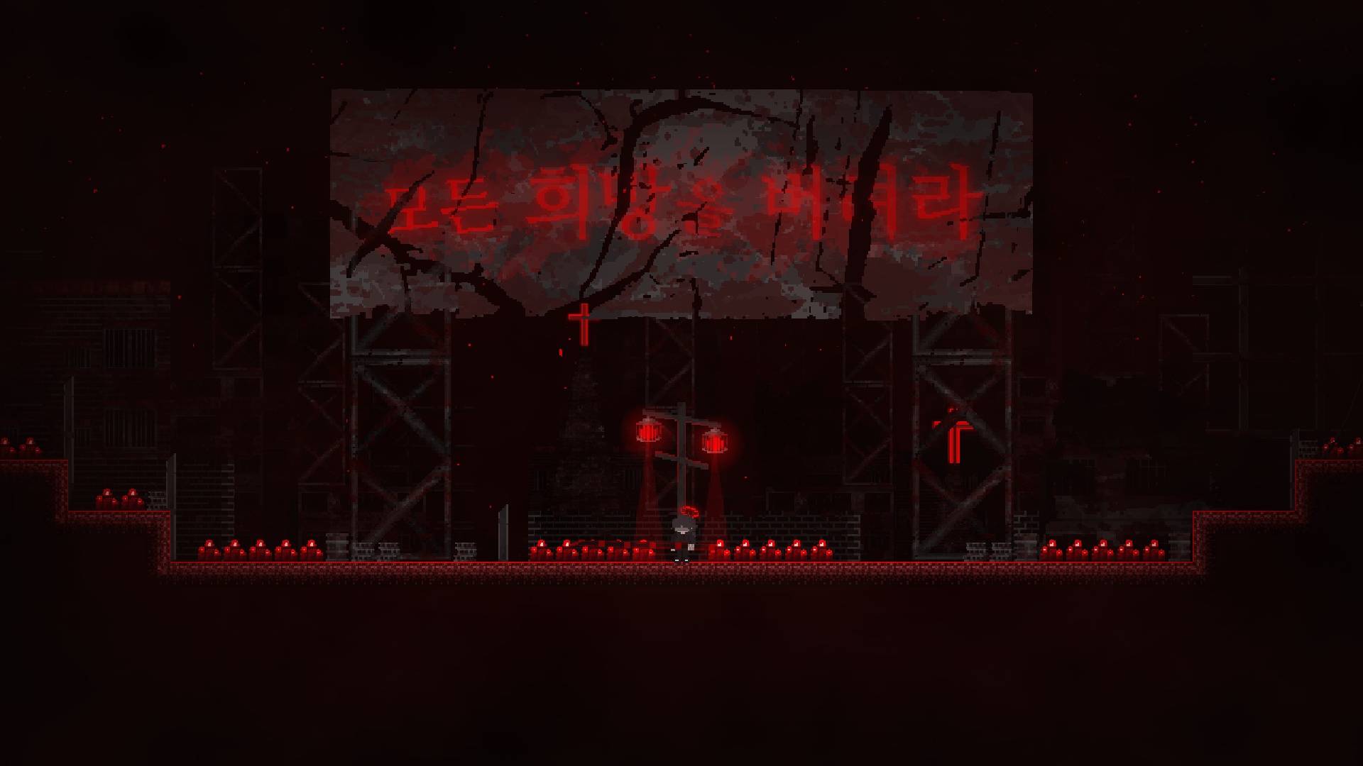 플레이어인 당신은 오직 죽창 한 자루만을 손에 쥔 채 악마들을 꿰뚫으며 나아가야 합니다.
