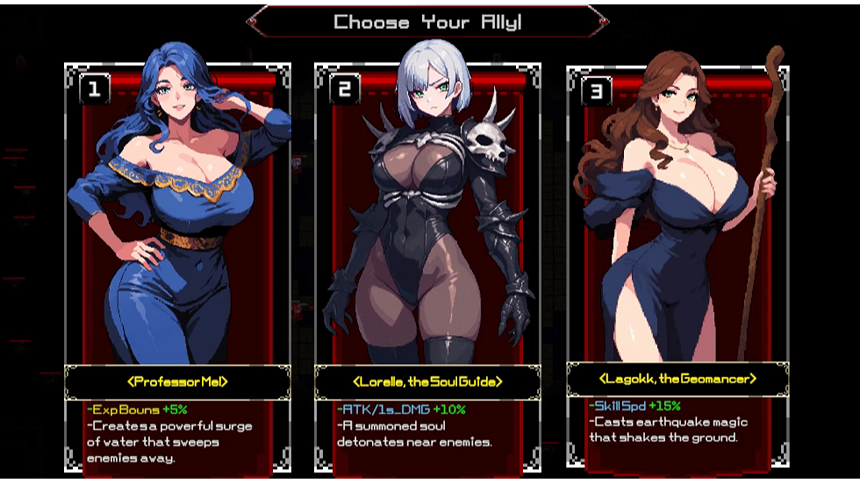미소녀 영웅과 적 캐릭터들은 섬세하고 매력적인 일러스트로 표현되었습니다.