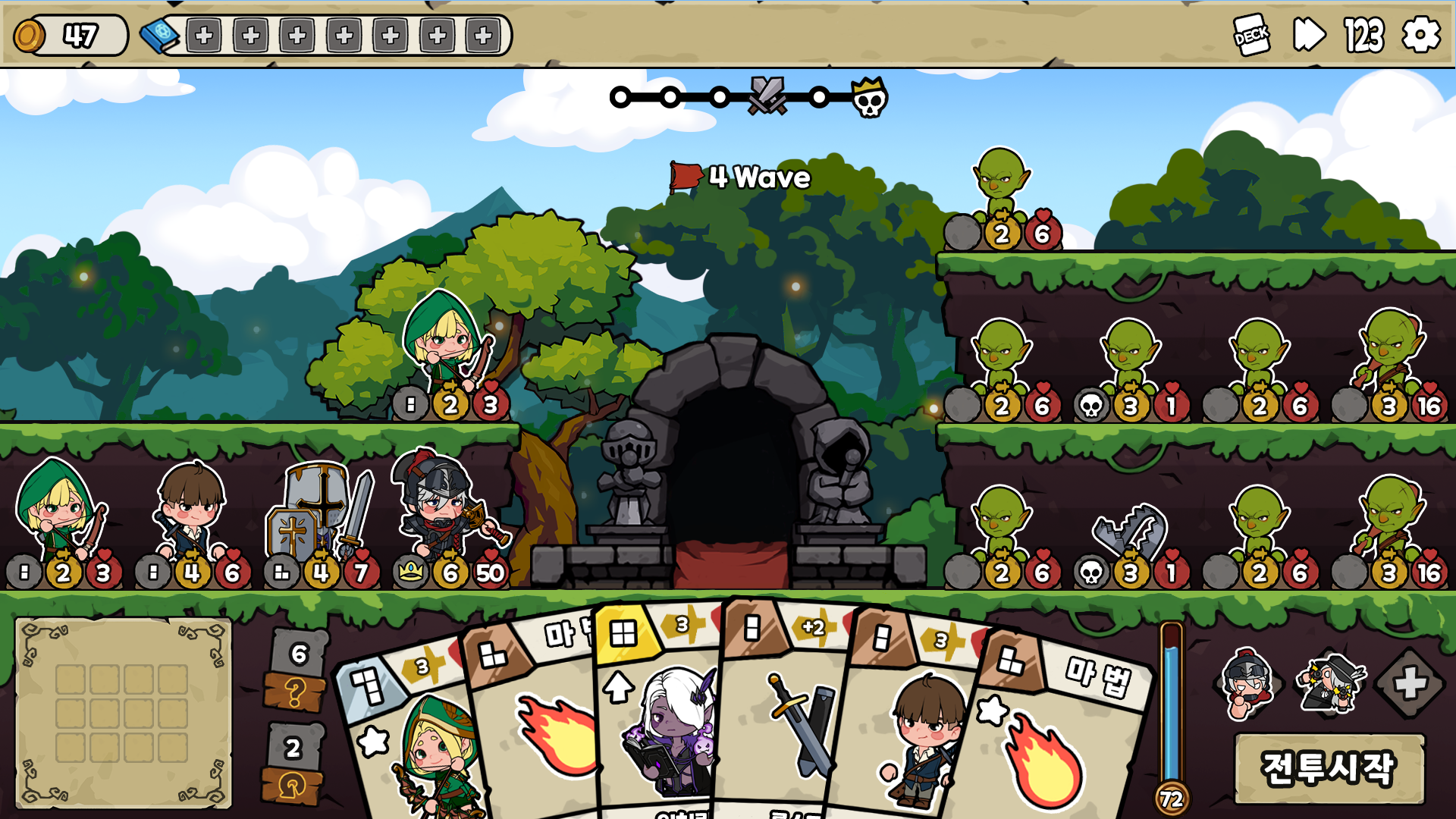던전럼블은 덱 빌딩과 오토배틀러가 결합된 로그라이크 게임입니다.