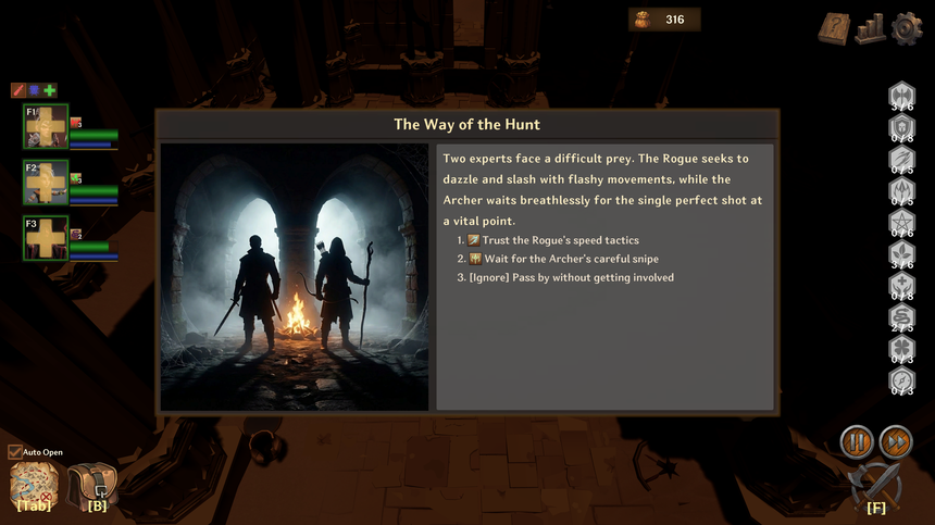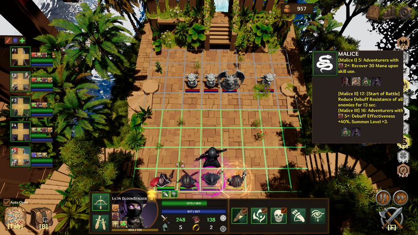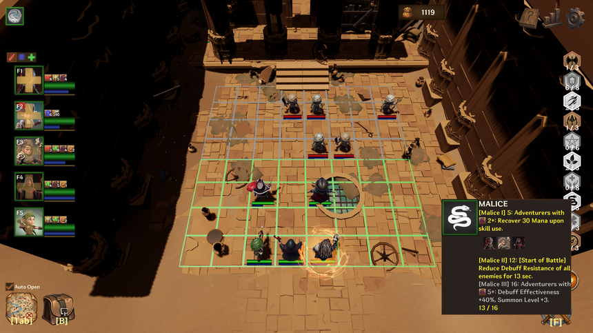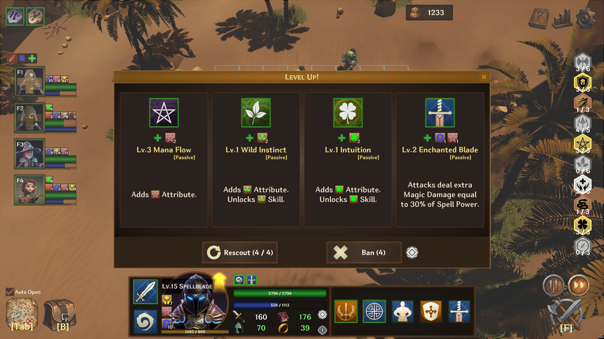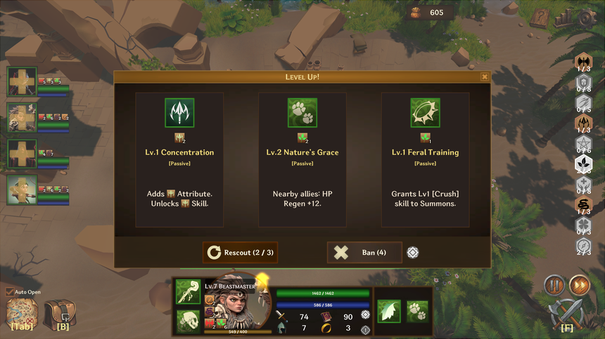 단순히 레벨만 올리는 것이 아닙니다. 레벨업마다 제시되는 선택지 중 하나를 골라 [Rage], [Nature], [Malice] 등 고유 속성을 쌓거나, 유효한 스킬을 배우세요. 당신의 선택에 따라 파티의 색깔과 시너지가 완전히 달라집니다.