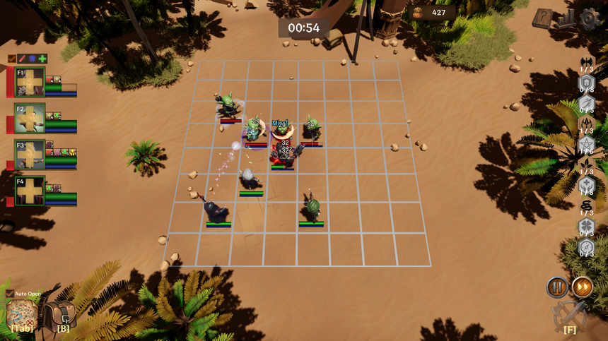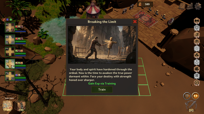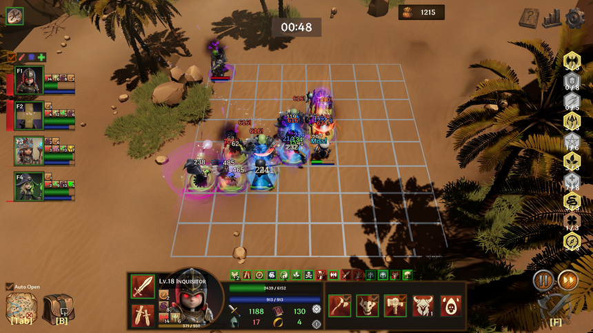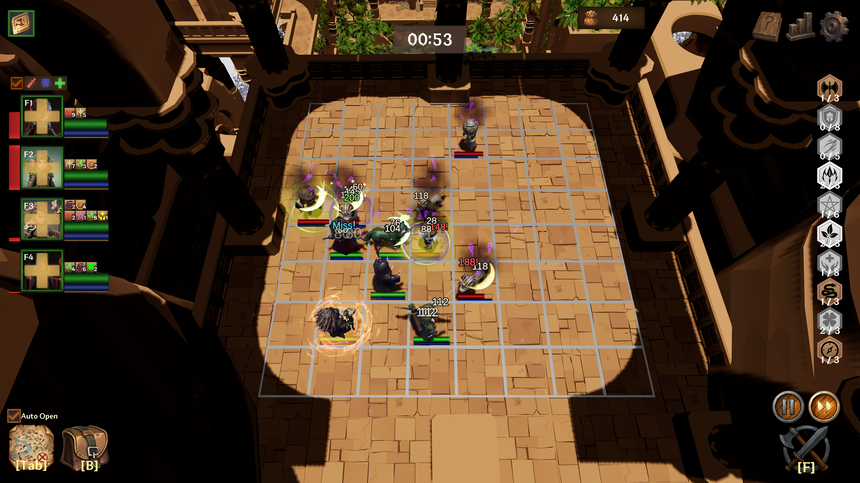 전투는 자동으로 진행되지만, 승패는 당신의 손끝에서 결정됩니다. 획득한 속성으로 강력한 버프 효과를 활성화하고, 적재적소에 물약과 스크롤을 사용하여 불리한 전투를 승리로 이끄십시오.