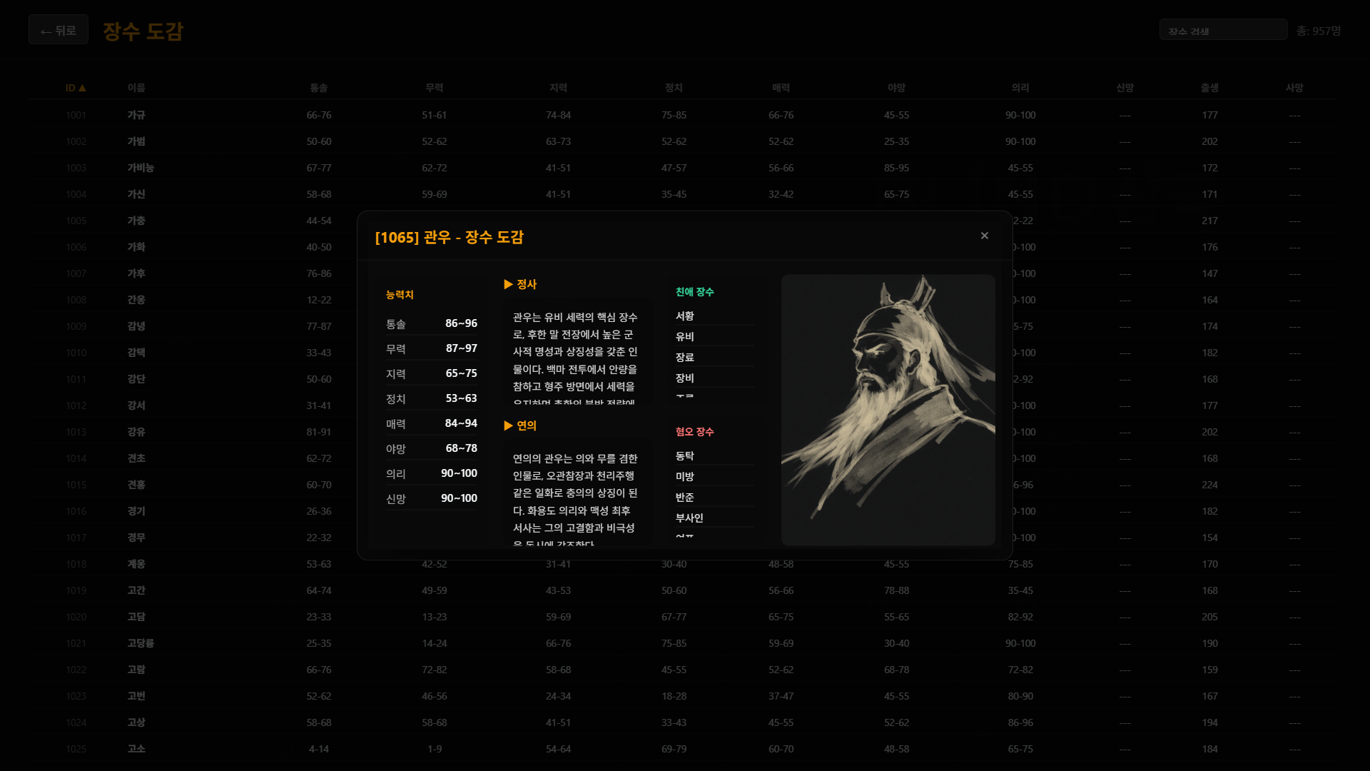 한 가지만 다릅니다 — 장수들이 "가명"을 씁니다.