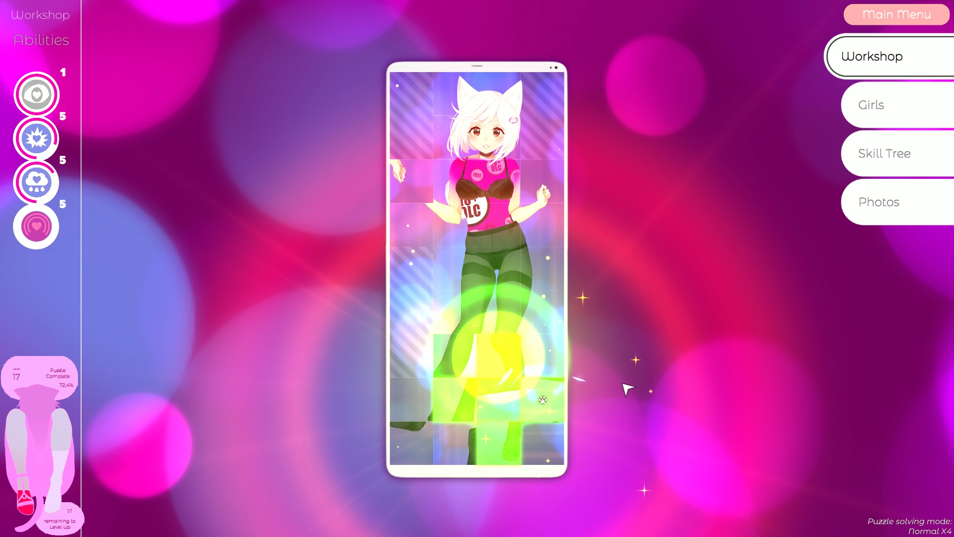 RPG 요소와 의미 있는 대화 선택지가 있는 퍼즐 게임. 모든 고양이 소녀들과 썸을 타보세요!