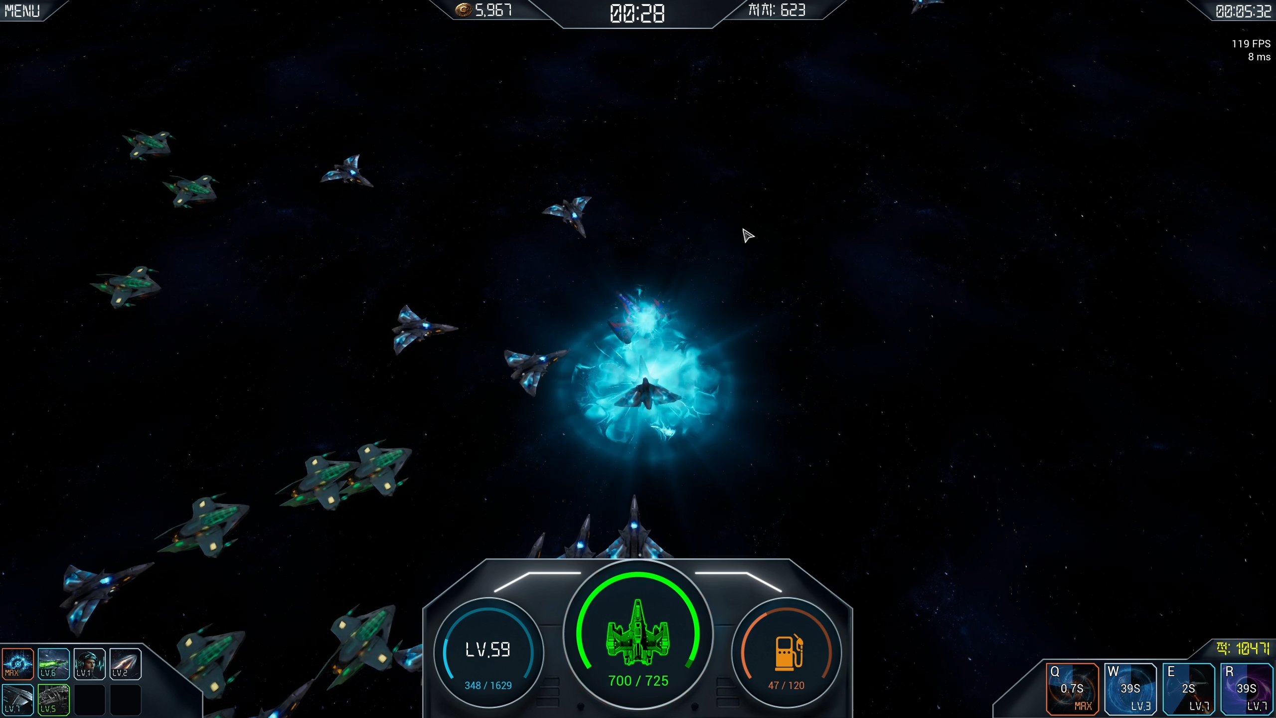 탑다운 3D SF 우주 서바이벌 슈팅 게임입니다.