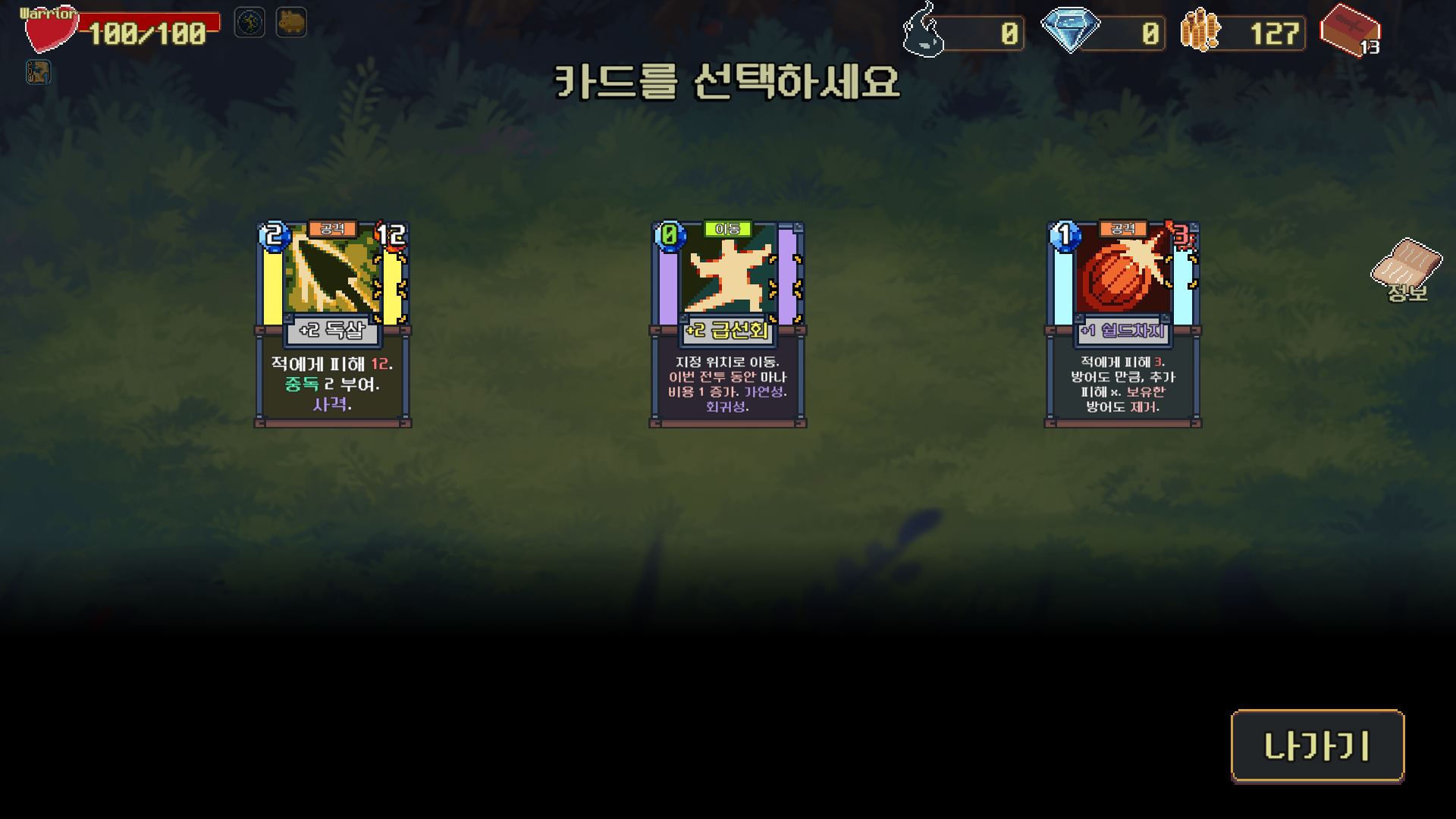 그동안 스테이지를 진행하며 수집했던 덱과 가장 큰 시너지가 발생할 수 있는 직업 유물을 선택해보세요!