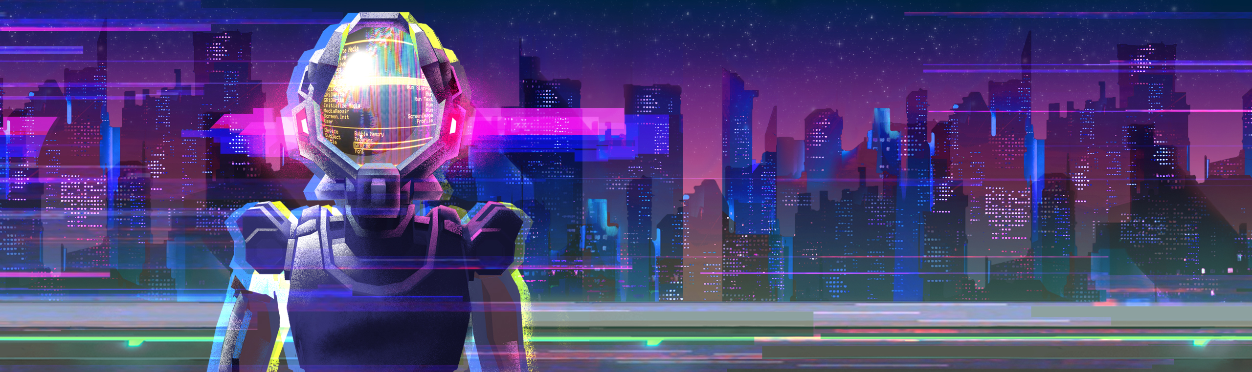 사이버펑크 도시의 아름다운 경관을 감상하고, 사악한 AI가 조종하는 무자비한 하수인들을 상대하세요.