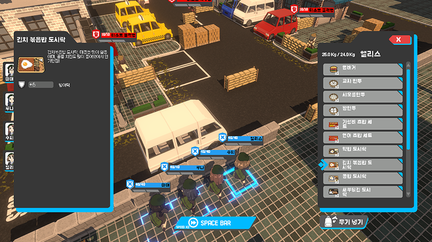 아이템을 사용하여 능력치를 일시적으로 상승시키거나, 수류탄으로 벽을 부셔 적의 엄페물을 파괴할 수 있습니다.