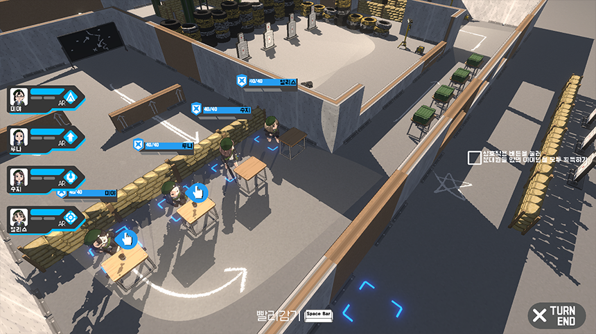 대원에게 우회공격 명령을 내려 엄폐물에 숨어있는 적을 확실하게 제압하세요!