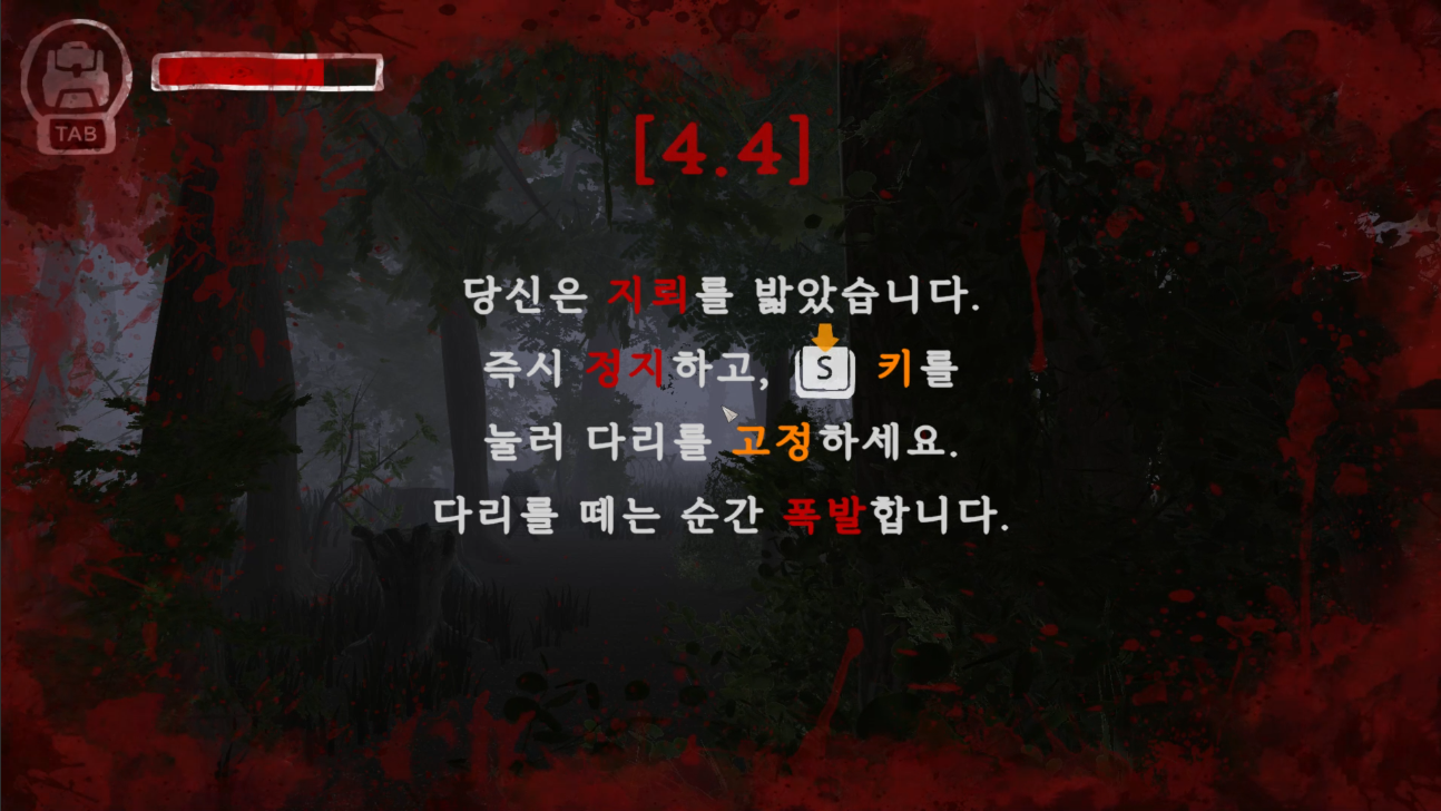 지뢰를 밟은 순간부터 [S] 키 입력을 유지합니다.