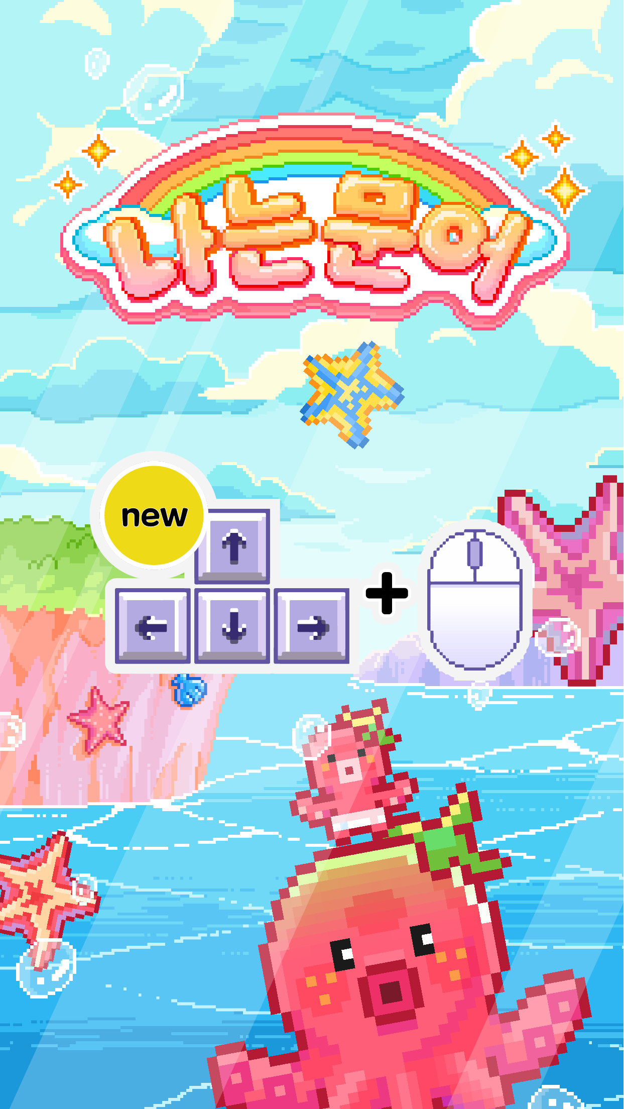 2D 픽셀 게임! 바다에 뛰어든 문어를 도와 적들을 피하며 레벨업 해보세요.