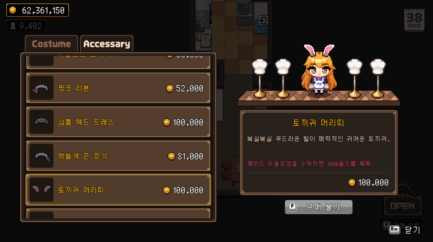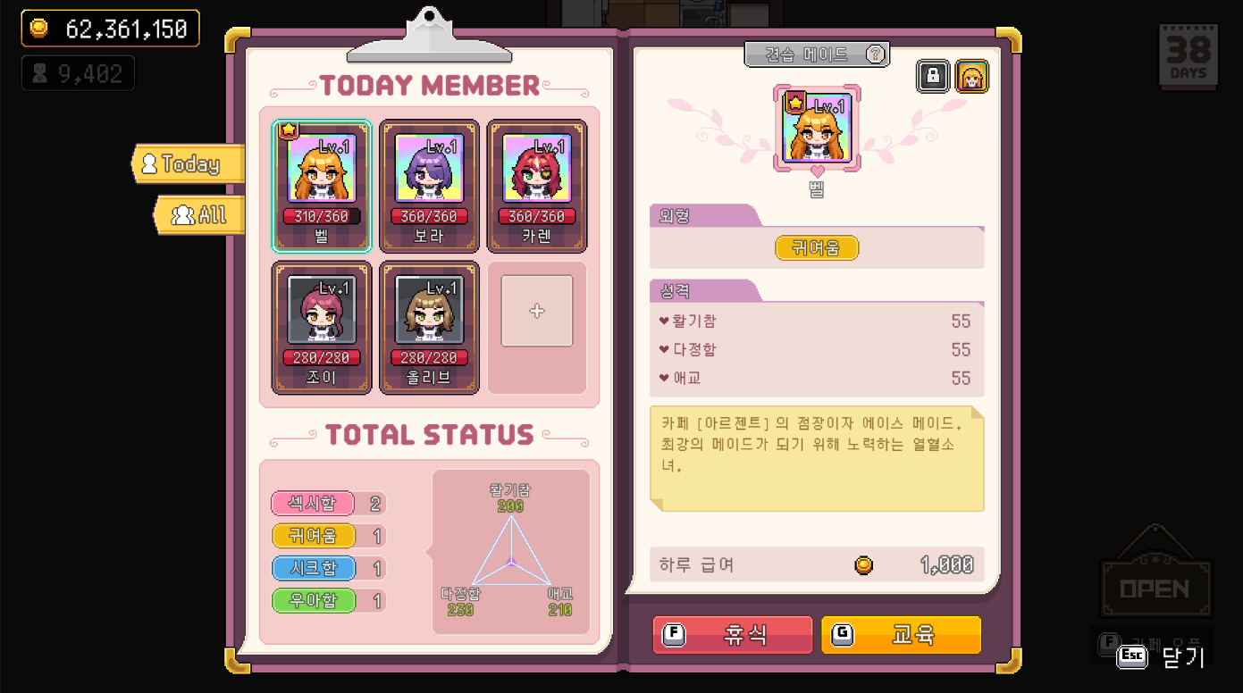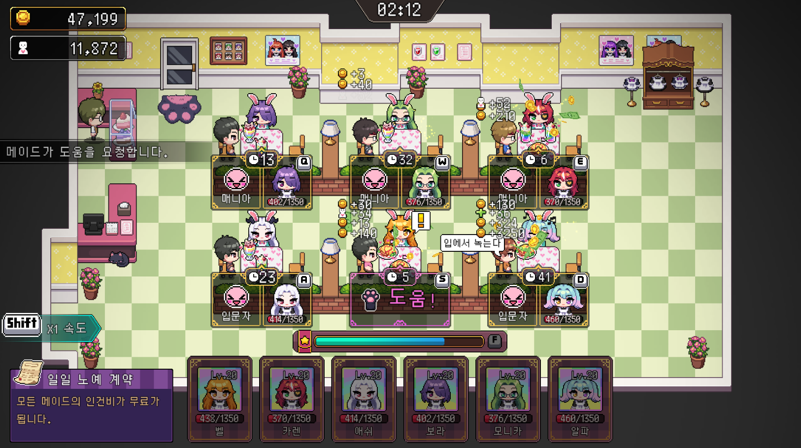 아기자기한 도트 그래픽과 귀여운 메이드 그리고 카페를 운영하는 타이쿤 요소를 가진 게임입니다.