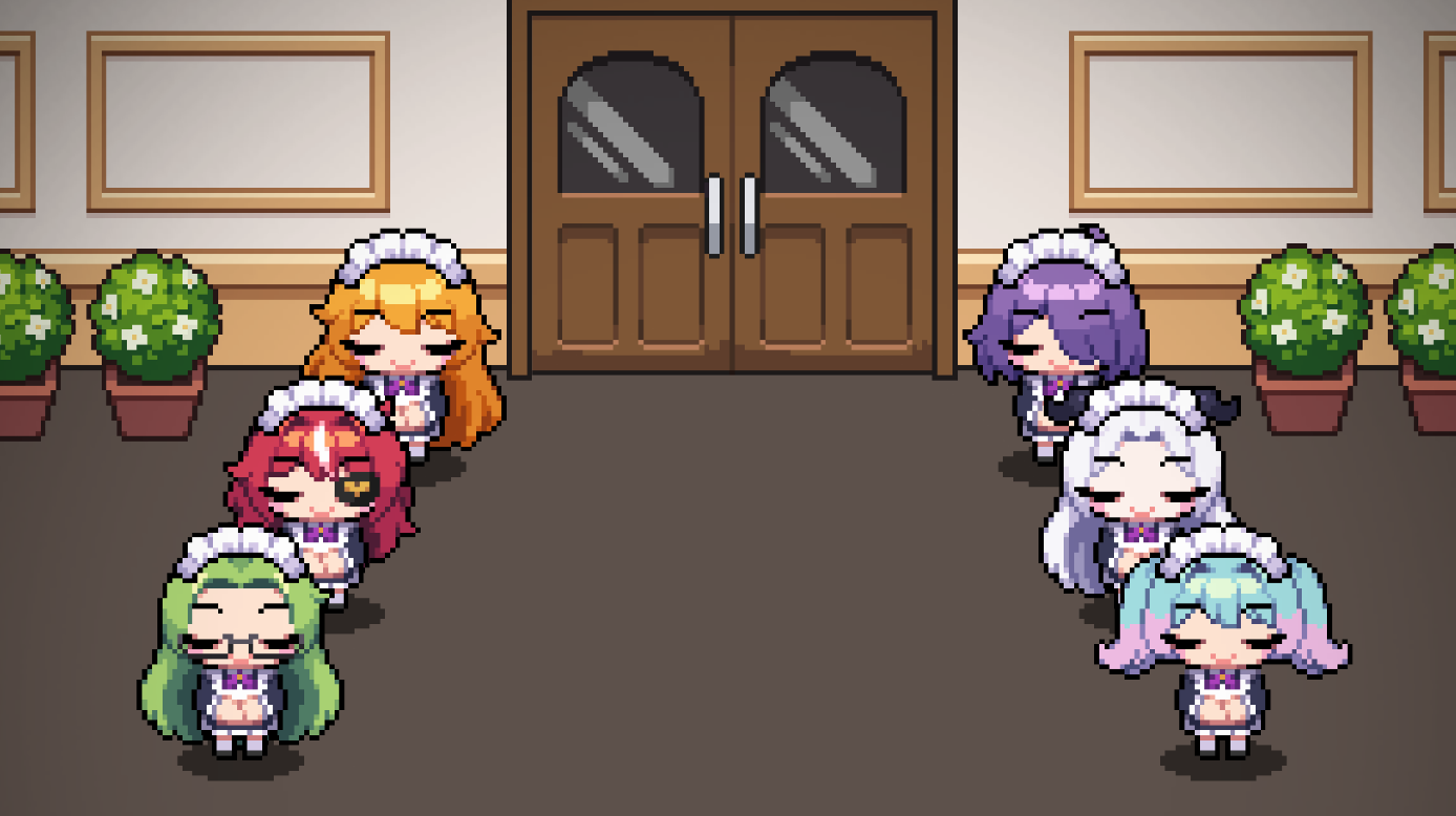 귀여운 도트 그래픽과 함께 메이드 카페를 운영하는 재미를 느낄 수 있는 타이쿤 게임