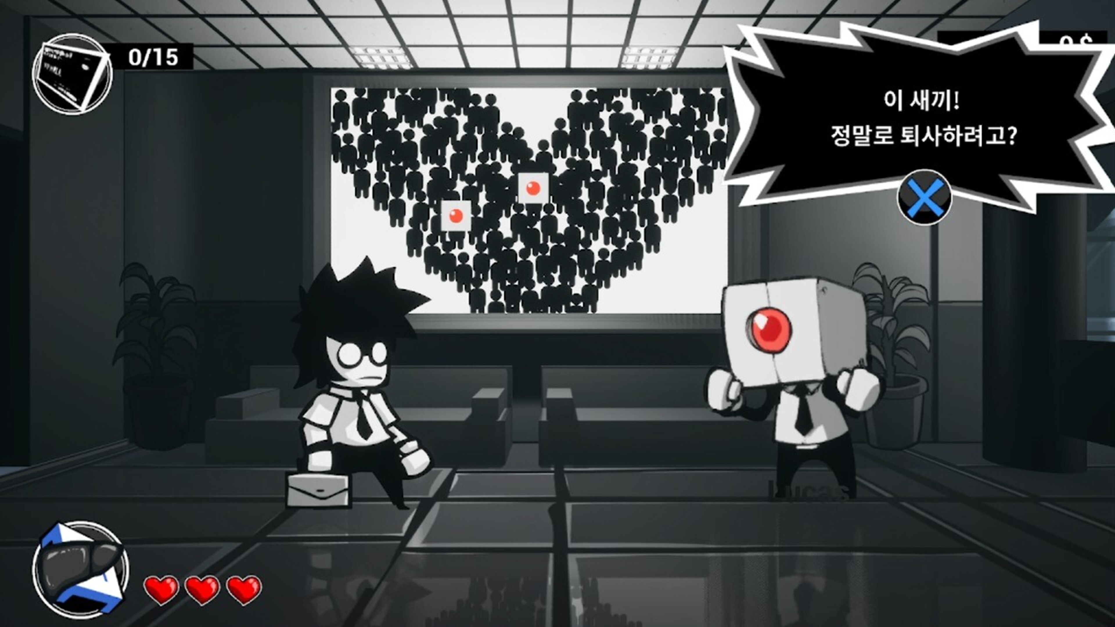 무슨 일이 벌어지고 있는지 알아내기 위해, 당신은 서류가방을 무기 삼아 사무실에서의 전투에 나선다.