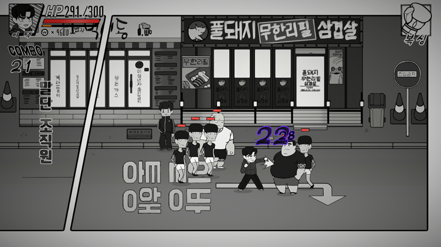 the T는 주인공 '택'이 기억을 되찾고 거리의 정의를 실현하는 2D 횡스크롤 액션 게임입니다. 택은 어린 시절 부모를 잃고 형의 사고로 보육원에서 자라며 병원비를 벌기 위해 체육관에서 일하게 됩니다. 그러던 중 기억을 잃게 된 주인공은 모종의 사건으로 자신의 기억을 되찾았고, 이후 약한 자들을 지키기 위해 거리로 나섭니다. 플레이어는 다양한 적들과 전투를 벌이고 레벨업과 전략적인 전투를 통해 점점 강해지는 주인공을 경험할 수 있습니다.