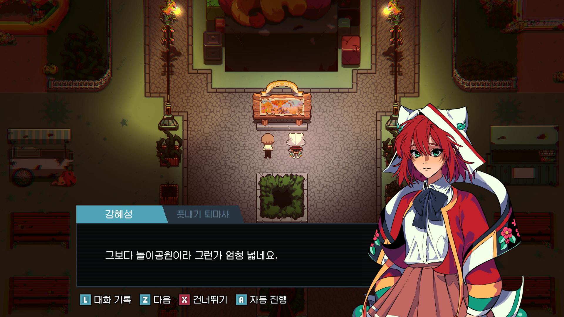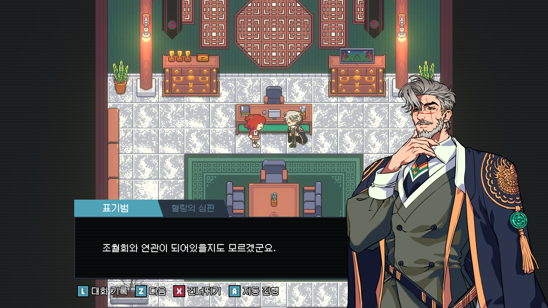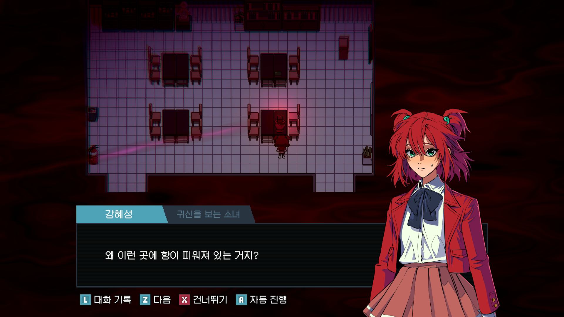 탑뷰 픽셀 그래픽 스타일의 한국 오컬트 판타지 어드벤처 게임입니다.