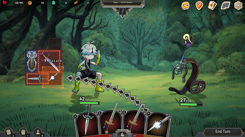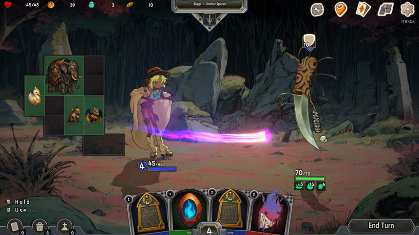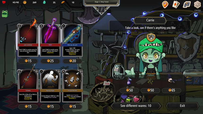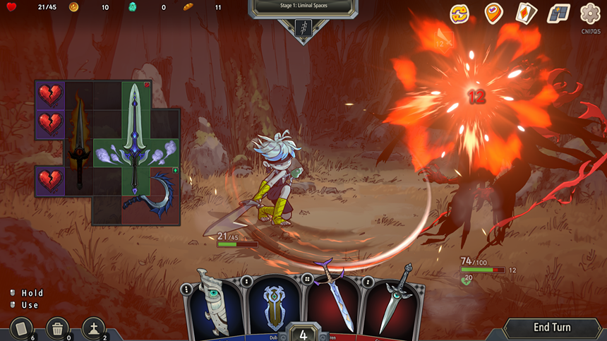 전투에서 이겨 나간다면 인벤토리 조각을 획득하여 인벤토리를 넓힐 수 있고, 카드를 추가로 획득 할 수 있습니다.