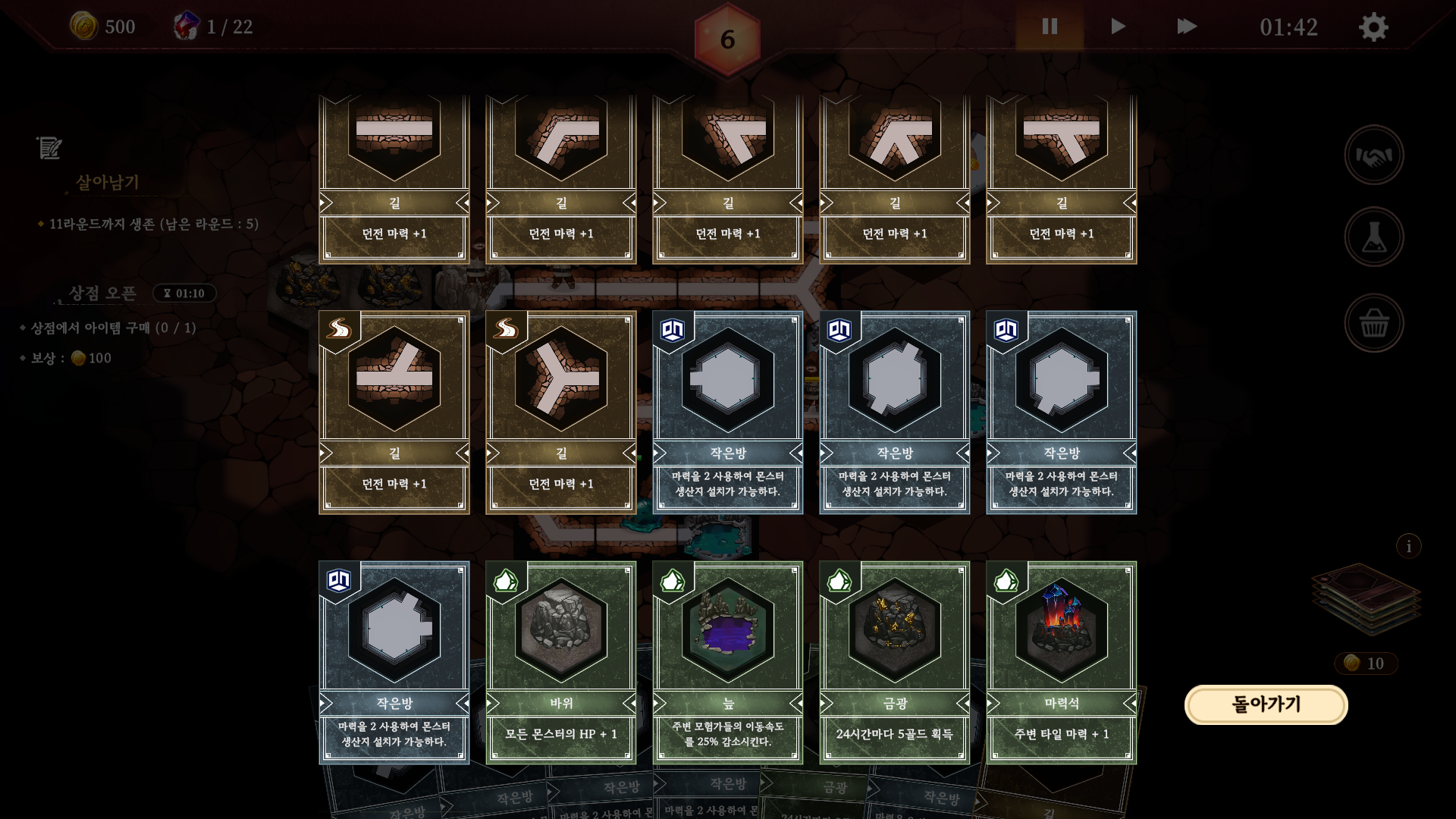 ✅ 무작위로 제공되는 타일과 카드를 활용한 던전 구성