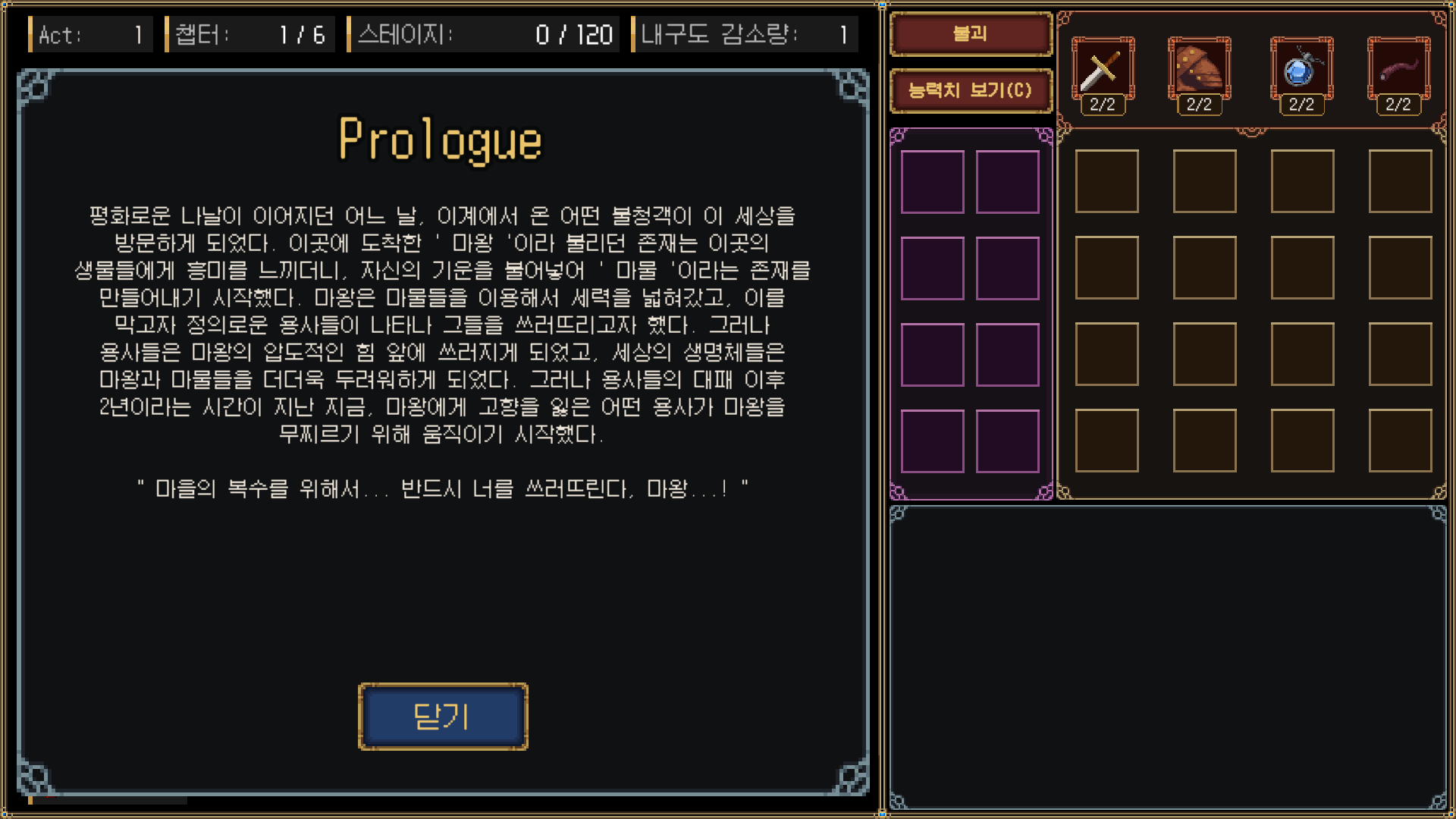 게임을 플레이하면서 얻은 몽환석으로 아이템이나 특성을 해금 및 강화를 할 수 있습니다.