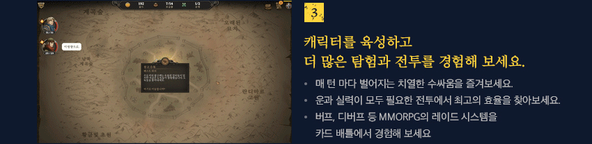 - 클래식 RPG의 감성 위에, 덱 빌딩이나 턴제 전략과 같은 현대적인 게임 컨셉이 합쳐져 그야말로 RPG와 TCG가 '절묘'하게 섞여있는 재미를 만들었습니다.