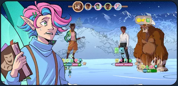 在 KreatureKind 的世界里,每个魔法阵营(演员、程序员、作家、舞者、音乐家、视觉艺术家和厨师)都生活在各自的城镇里。当你拜访他们时,你需要沿着程序生成的地图前进,直到遇到他们的领袖。如果你说服他们支持你,你在该阵营中的地位就会提升——否则,你就必须重新开始地图。别担心,所有已解锁的内容你都可以保留!