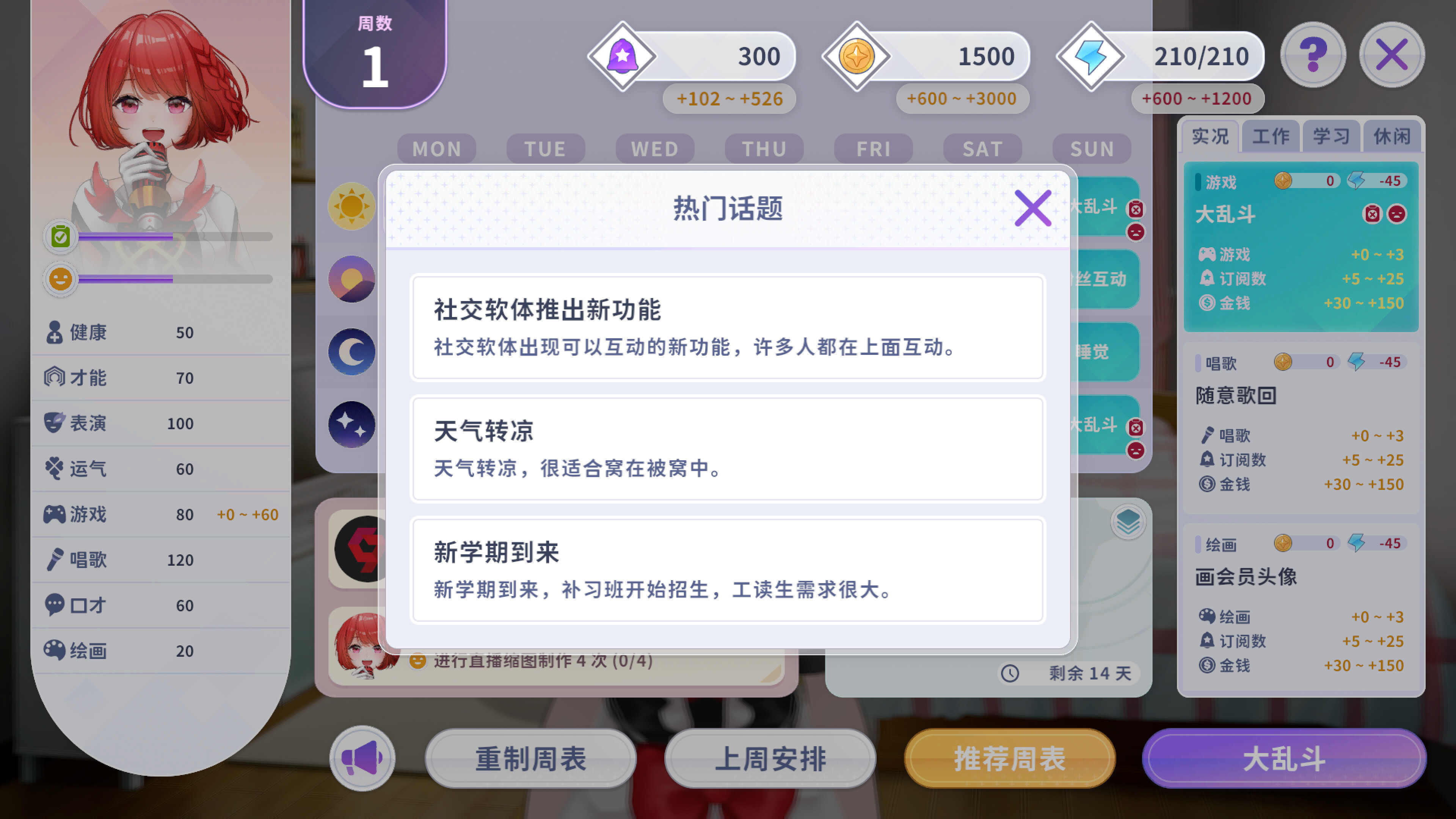 培育过程将不会是一次就可以通过的过程,需要反覆培育VTuber并且强化经纪人的天赋树,让培育的角色越来越强,有点类似Roguelike的玩法。