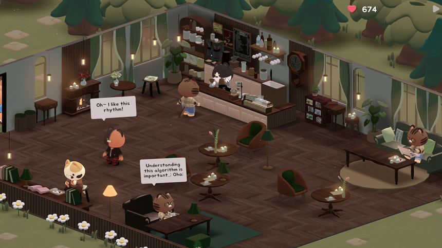 一款治愈系放置游戏,你可以在一家播放着低保真音乐、有猫咪陪伴的小咖啡馆里悠闲地度过一天。