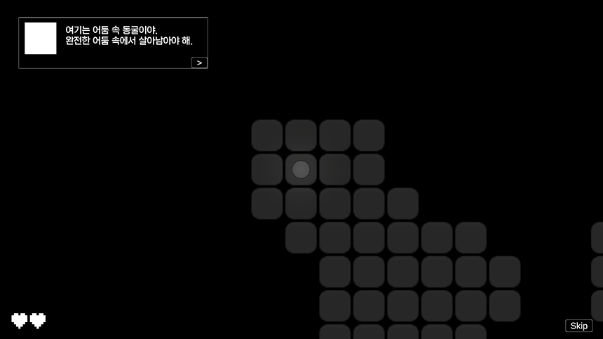 你是一只曾经生活在这个洞穴里的蝙蝠。在黑暗中,你的眼睛什么也看不见,你必须利用回声来了解周围的结构,并继续向下探索,同时还要避开隐藏在洞穴深处的四种捕食者。