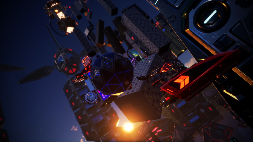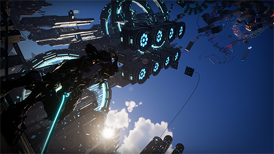 To thwart Samurai Robo's plan to take control of all the robots in the universe by awakening the Dominion Sphere from the highest point on the planet Mechanos, Katana Robo rushes to the Robot Tower, which looks like a platformer game stage made up of buildings, cars, space battleships, and more. Raising his Dominion Sphere as high as he can, Samurai Robo harnesses the power of the Dominion Sphere to bring objects together to create an impromptu robot tower, which is defended by numerous enemy robots that serve Samurai Robo. Katana Robo's journey includes battles with a variety of enemy robots, and it's up to you to destroy the Dominion Sphere before Samurai Robo can fully awaken it and turn the robots of the universe into his minions.