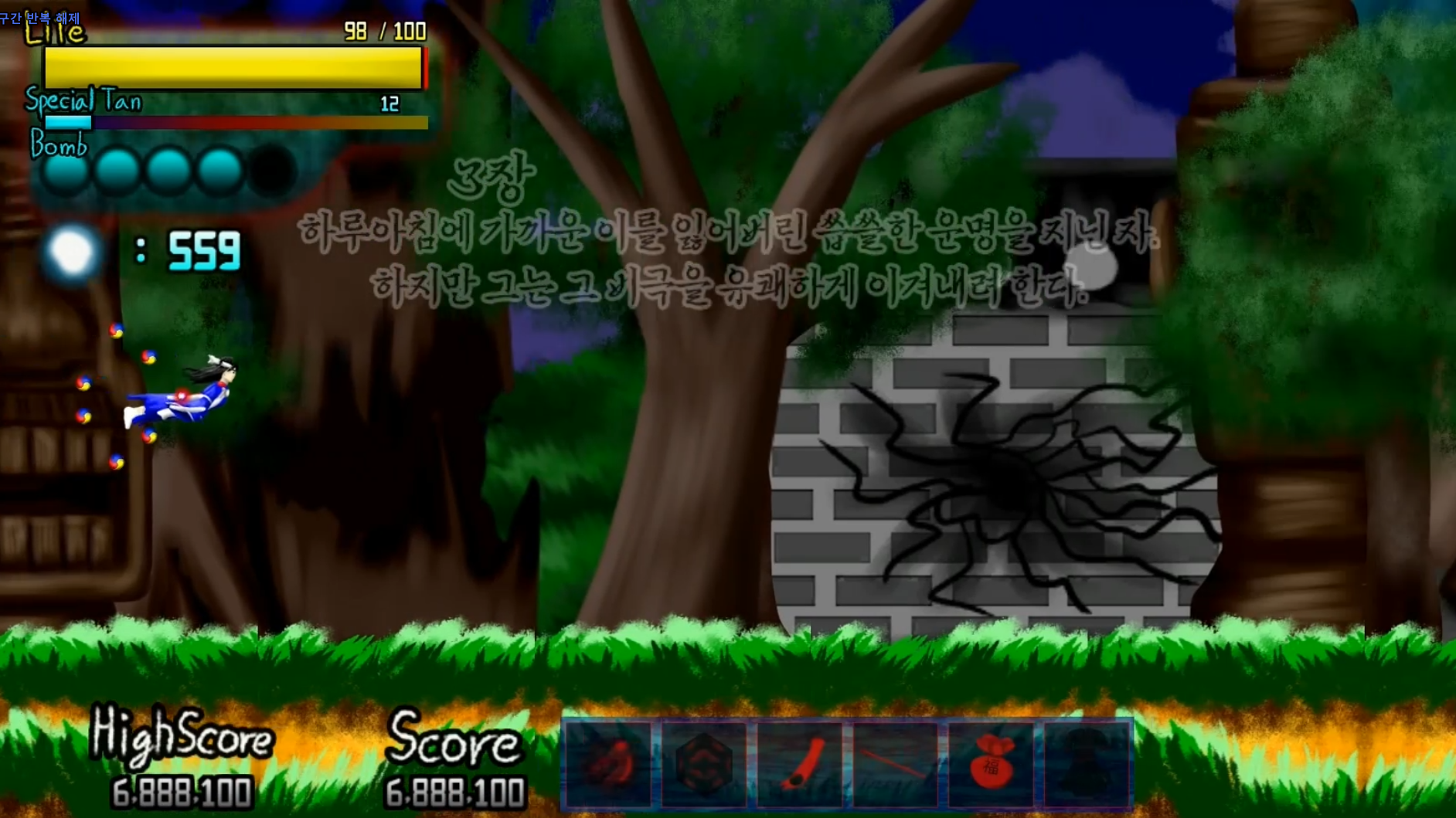 Use Bomb, skip boss dialogue: X