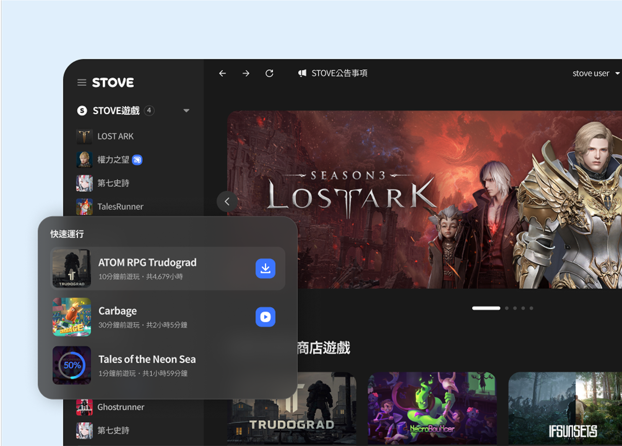 永無止盡的遊戲世界!透過將使用者與遊戲相互串聯的空間客戶端,來安裝並執行豐富多彩的遊戲吧Windows 7以上的作業系統、1Ghz以上的處理器、1GB以上的RAM、500MB以上的硬碟空間、網路連線安裝新客戶端服務介紹留下意見FAQ詢問客服中心