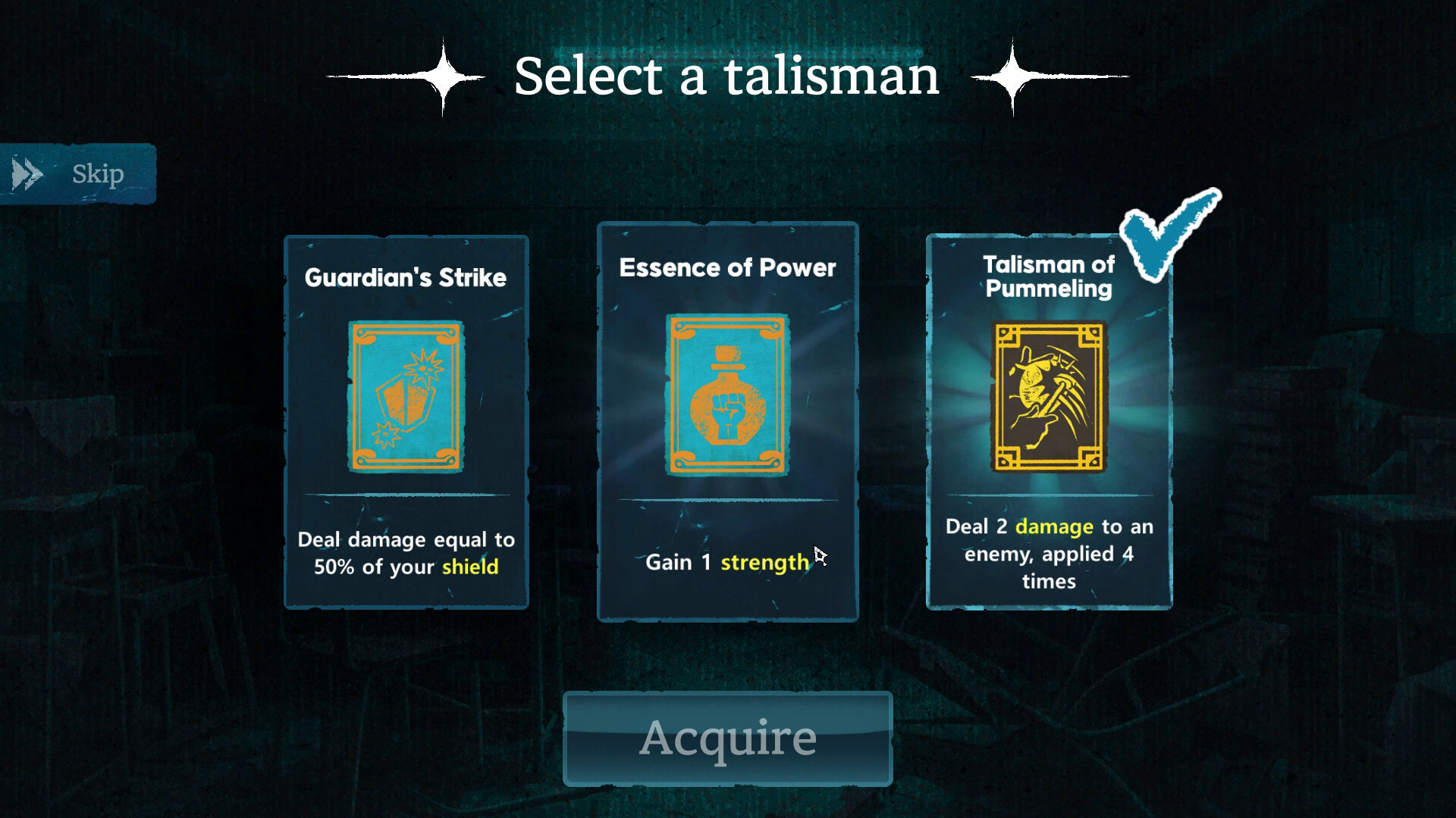 每完成一場戰鬥,你就會獲得一個禁忌護身符。將你獲得的護身符和遺物組合起來,組成一副詛咒卡牌。在這個瞬息萬變的學院裡,你的選擇將決定你的生存。