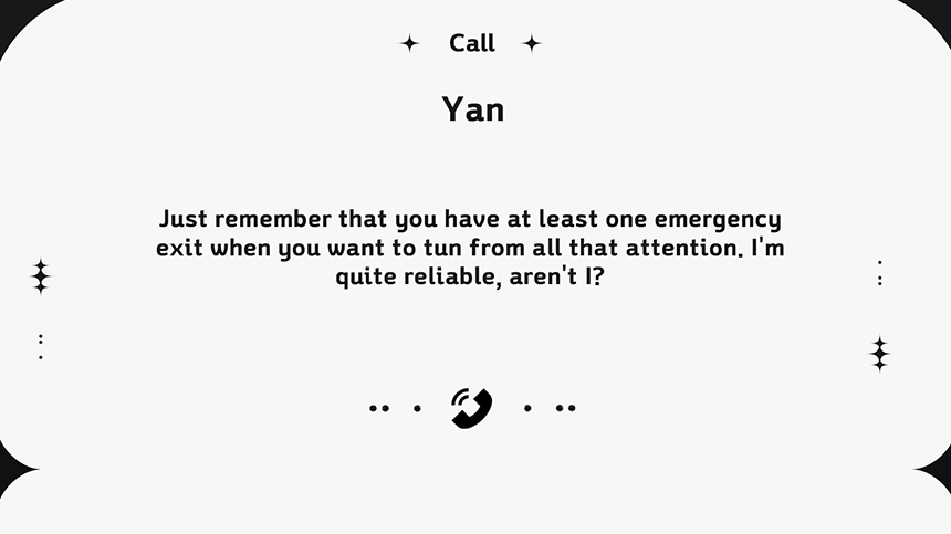 For more intimate and deep exchanges, there are about 400 dialog choices for Yan's route alone.